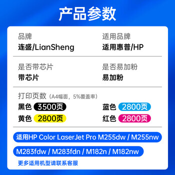 连盛适用惠普M283fdw/fdn硒鼓 HP Color LaserJet Pro MFP M283fdw/fdn专用墨粉盒 四色套装 带芯片 上机即用