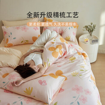 多喜爱家纺纯棉床上四件套 双人全棉被套罩床单床上用品套件1.5米床203*229cm