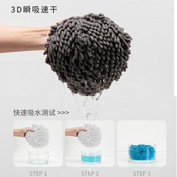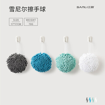 三利雪尼尔擦手球2条擦手巾厨房卫生间可爱擦手毛巾 芝麻灰+奶油白