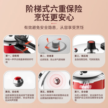 爱仕达 ASD 高压锅304不锈钢六保险5.5L压力锅燃气电磁炉通用YS22A7WG