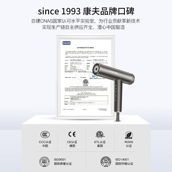 康夫(CONFU)高速电吹风机家用送女友生日礼物大功率大风力负离子吹风筒恒温护发廊 KF-K9 棕2.2m线长