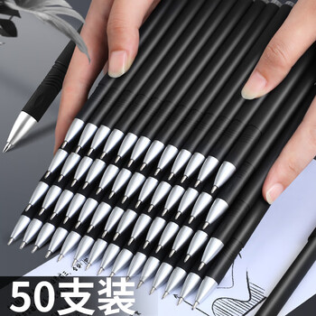 嘉然恒 50支黑色中性笔0.5mm子弹头水性签字笔 办公商务会议专用磨砂笔 学生考试专用大容量笔芯圆珠碳素