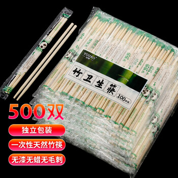 优奥 一次性筷子500双独立装家用卫生竹筷方便筷外卖打包餐具商用批发