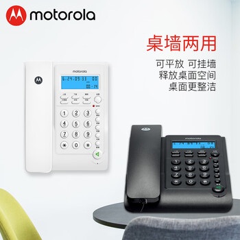 摩托罗拉(Motorola)CT220C有绳电话机座机 蓝色背光 清晰免提 免电池免打扰可壁挂家用办公固定电话机 白色