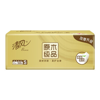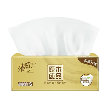 清风抽纸 原木纯品20包*4层90抽无香卫生纸S码 餐巾纸 新旧包装随机发
