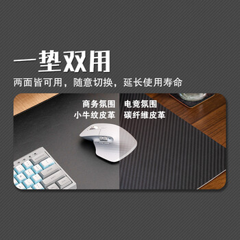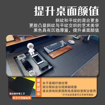 飞遁LESAILES碳纤维纹理 皮质皮革鼠标垫超大号 办公电脑键盘防水防滑家用书桌垫 黑色1000*500*2mm