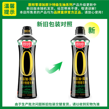 厨邦酱油 原汁生抽 【配料干净】黄豆特级酱油500ml 酿造酱油调味品