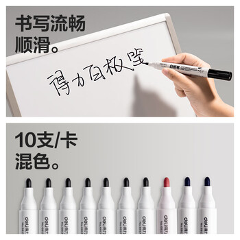 得力(deli) 白板笔套装 可擦易擦书写顺滑 办公文具会议教学 7黑2蓝1红混色 10支/盒 33176