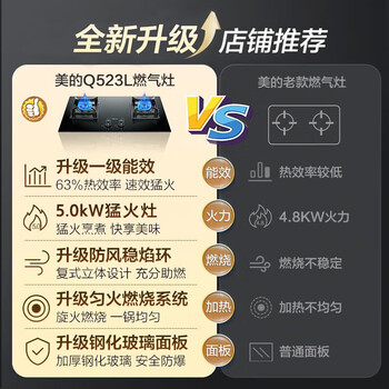 美的(Midea)【液化气/煤气罐】燃气灶 大火力家用灶具 5.0kW猛火大火灶台嵌两用 JZY-Q523L-M