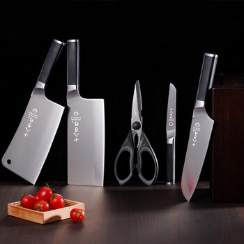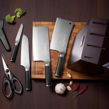 砍骨刀*1 切片刀*1 多用刀*1 水果刀*1 剪刀*1 刀架*1 内嵌磨刀器*1