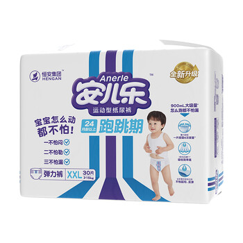 安儿乐(Anerle)运动型弹力裤XXL30片加大号婴儿尿不湿 成长裤 超薄透气拉拉裤*1包 【30片/包,包为销售单位】