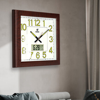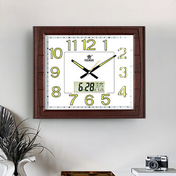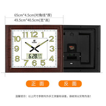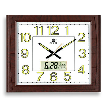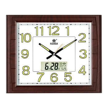 POWER霸王挂钟 客厅家用新中式挂墙 夜光日历石英钟 长49cm木纹色0515