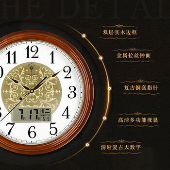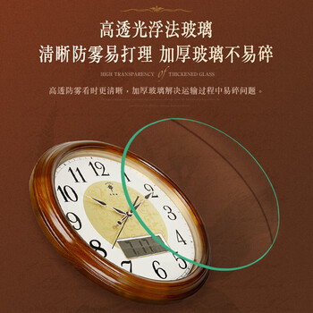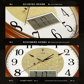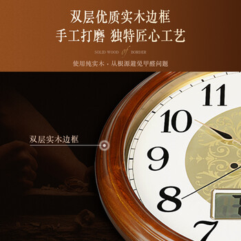 北极星(POLARIS)挂钟实木钟客厅家用复古挂表轻奢卧室时钟 9063智能机芯
