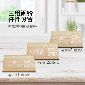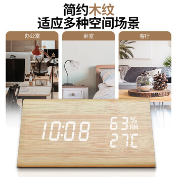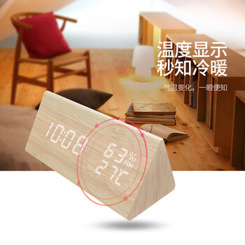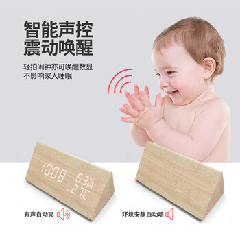 摩门(Momen)闹钟 学生桌面温湿度时钟 LED创意声控床头卧室原木色三角形钟表开学季