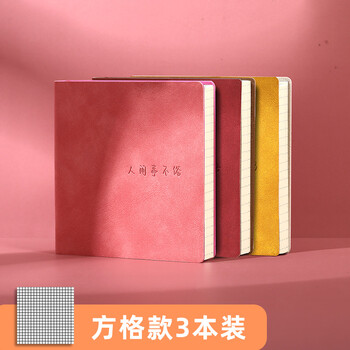 法拉蒙faramon 3本装加厚方型羊巴本口袋本小笔记本便携随身携带记事本文具日记本 (粉红黄)横线款