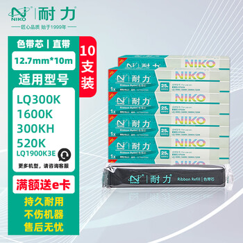 耐力(NIKO)N LQ1600K 色带芯 10支装 适用爱普生LQ1000K 1600KII 1900K 300KII 50K 55K 800K 实达1900KIIIE