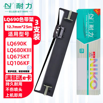 耐力(NIKO)N LQ690K/675KT/680KII 黑色色带架 3支装 适用爱普生 LQ690/690C/675KT/680KII/690K/695C 色带框