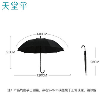 天堂 长柄加大雨伞半自动黑胶直杆伞晴雨伞太阳伞70*10骨 碳黑色