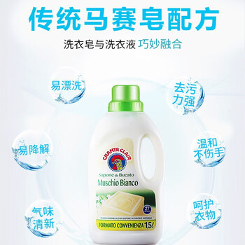 大公鸡管家 马赛洗衣液(白苔香味)1.5L*2 衣物洗涤剂 易漂洗温和新老随机