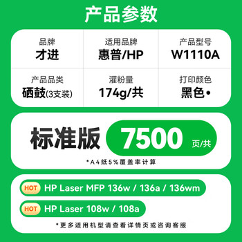 才进适用惠普136w硒鼓带芯片laser mfp 136a/nw/wm打印机墨盒w1110a粉盒110A 108w 138p易加粉108a复印一体机