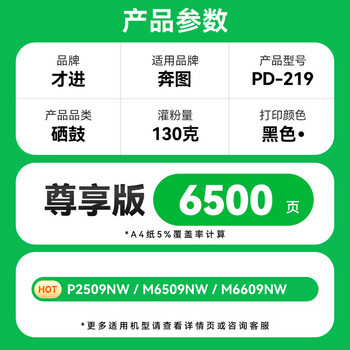 才进适用奔图PD219硒鼓pantum M6506N/NW粉盒激光打印机P2506W/NW易加粉墨盒M6556N/NW碳粉盒M6606N/NW墨粉盒
