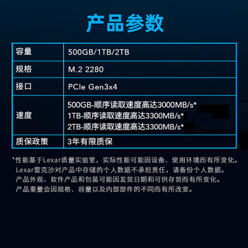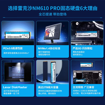 雷克沙(Lexar) 500G SSD固态硬盘 M.2接口 NVMe协议(PCIe 3.0x4)读速3000MB/s NM610PRO快速加载广泛兼容