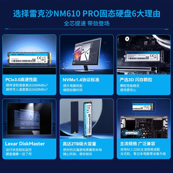 雷克沙(Lexar) 2TB SSD固态硬盘 M.2接口 NVMe协议(PCIe 3.0x4)读速3300MB/s NM610PRO快速加载 广泛兼容