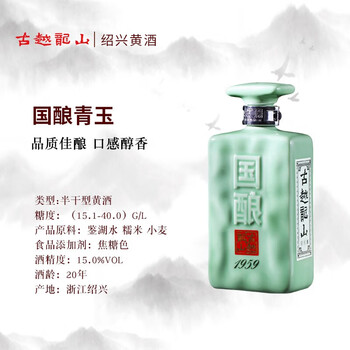 古越龙山国酿青玉二十年 半干型 绍兴黄酒 500ml*6瓶 整箱装