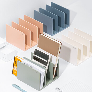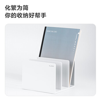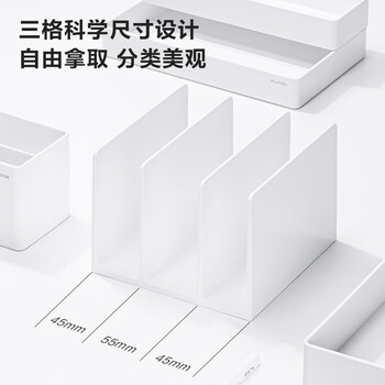 得力【开学必备】三联书立架 德国创意设计 学生桌面文件框书架办公收纳整理小号书靠 象牙白NS006