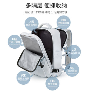Landcase背包旅行包女大容量双肩包男短途旅游包多功能电脑包5162浅蓝小号