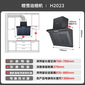 主机*1,塑料胶粒*3,出风口座*1,烟管*1,烟管紧固螺钉*2,黑色海绵条*1,自攻螺钉*1,说明书*1,合格证*1,保修卡*1,安装卡*1,烟机紧固螺钉*3,环保清单*1,油杯*1