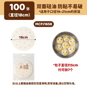 美厨(maxcook)蒸笼纸垫纸蒸包子纸蒸馒头纸不粘一次性100张 直径18cm MCPJ1658