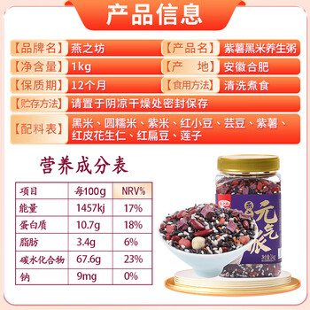 燕之坊 紫薯黑米粥2斤 腊八粥莲子糯米紫米红豆花生芸豆八宝粥