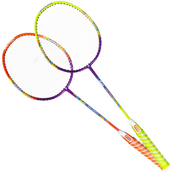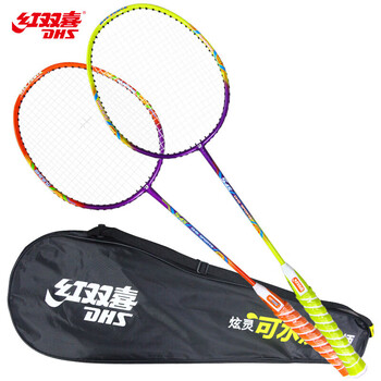 红双喜(DHS)羽毛球拍套装可水洗四星双拍学生儿童含尼龙球手胶拍包E-S45