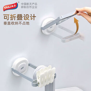太力衣架收纳神器多功能收纳架挂钩吸盘免打孔上墙强力粘胶可折叠 1个
