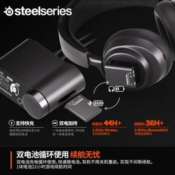 Arctis Nova Pro 无线耳机*1 无线基座*1 电池*2 USB-C 转 USB-A 线 *2 3.5mm 音频线*1 麦克风防風罩*1 产品信息指南*1