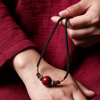 石传百世朱砂吊坠男女士锁骨链护身符紫金砂挂件转运珠本命年生日礼物