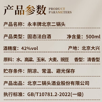 永丰牌 北京二锅头 国际版大师酿系列白瓶 白酒 42度 清香型 500ml*6瓶 整箱装