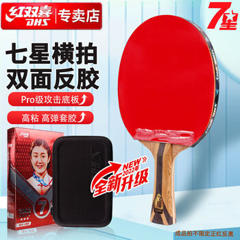 红双喜DHS狂飚七星乒乓球拍横拍比赛柚木面材+碳素 7层攻防H7002