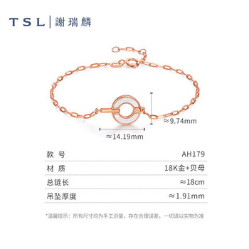 谢瑞麟(TSL)38妇女节礼物18K金手链女款白贝母圆环玫瑰金彩金手链手饰AH179