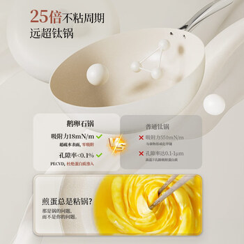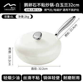 Velosan温仑山鹅卵石炒锅不粘锅炒菜锅麦饭石色铁锅燃气灶电磁炉白玉兰