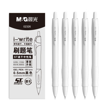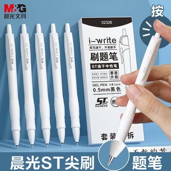 晨光(M&G)文具0.5mm黑色1008速干ST按动中性笔 考公刷题笔签字笔 i-write系列 5支/盒AGP02326A