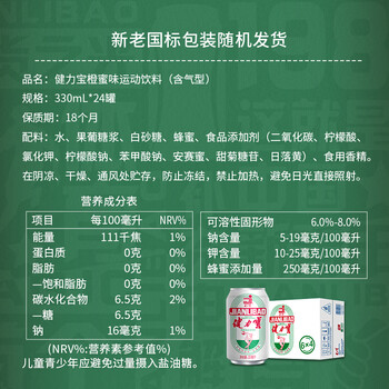 健力宝经典款碳酸饮料橙蜜味330ml*24罐火锅烤肉聚餐汽水果味补充电解质