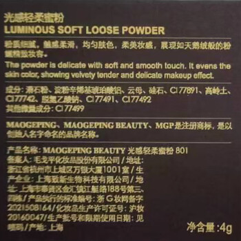 产品(注册/备案)名称 毛戈平光感轻柔蜜粉