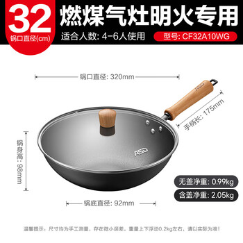 爱仕达(ASD)炒锅无涂层锈不了轻量爆炒精铁锅炒菜锅32cm燃气专用CF32A10WG