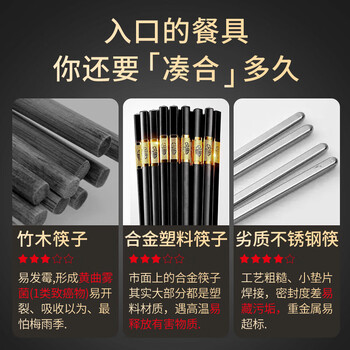 唐宗筷 316L不锈钢筷子10双装 防滑 家用筷子 酒店公筷一人一双可定制