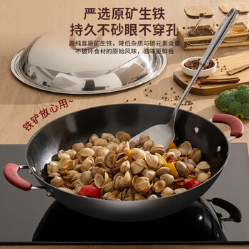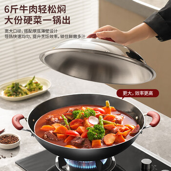 爱仕达(ASD)炒锅铸铁锅防锈无涂层大铁锅炒菜锅40cm燃气电磁炉通用CF40E1WG