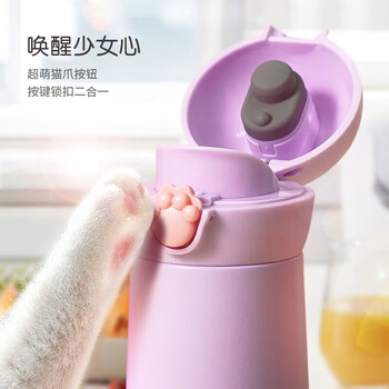 乐扣乐扣(LOCK&LOCK)喵喵弹跳保温保冷杯 可爱便携不锈钢水杯子橘色400mL LHC3293ORG