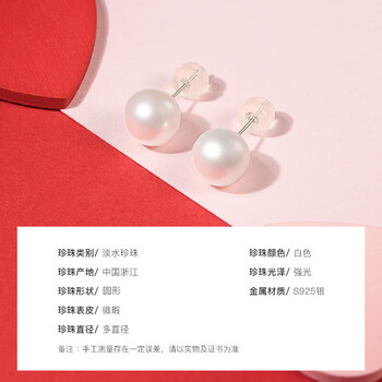 珍珠皇后s925银淡水珍珠耳饰 强光珍珠耳钉耳环女妈妈生日礼物送老婆女