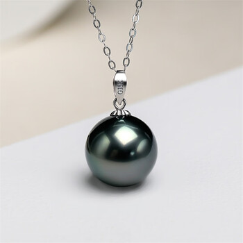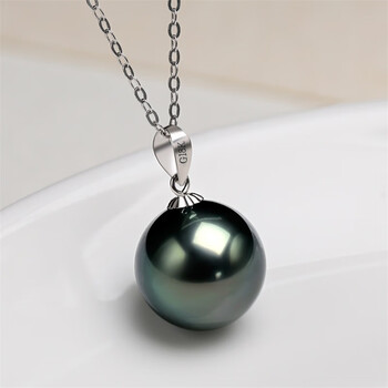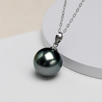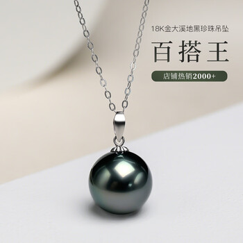 珍珠皇后18K金大溪地黑珍珠吊坠 正圆海水珍珠项链妈妈生日礼物送女朋友